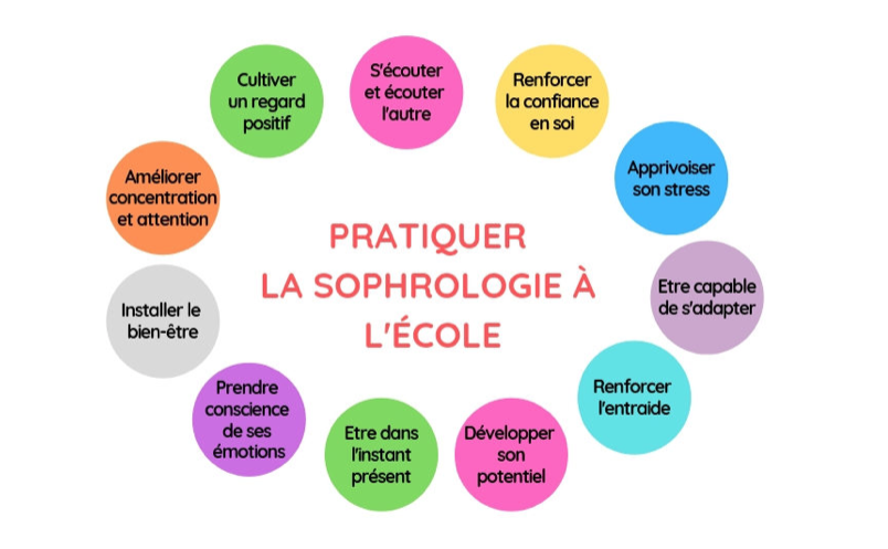 Les ateliers de sophrologie en milieu scolaire permettent de développer la capacité d'écoute d'autrui, la bienveillance, la confiance en soi, l’entraide, en identifiant ses ressources et en apprenant à les mobiliser.